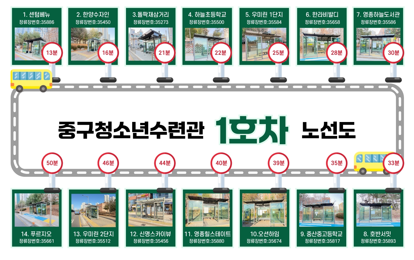 - 7. 영종하늘도서관(정류장번호: 35586) 30분 출발